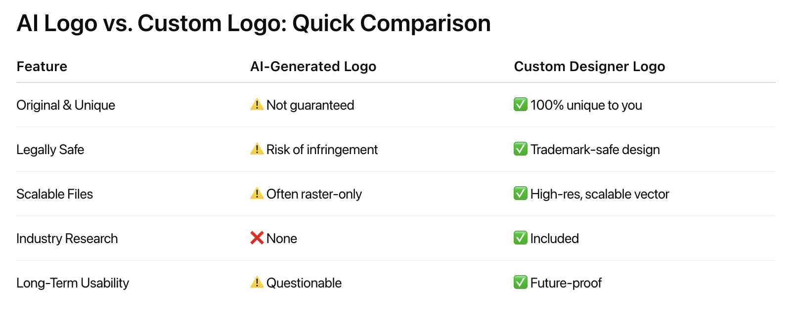 AI Logo vs. Custom Logo: Quick Comparison